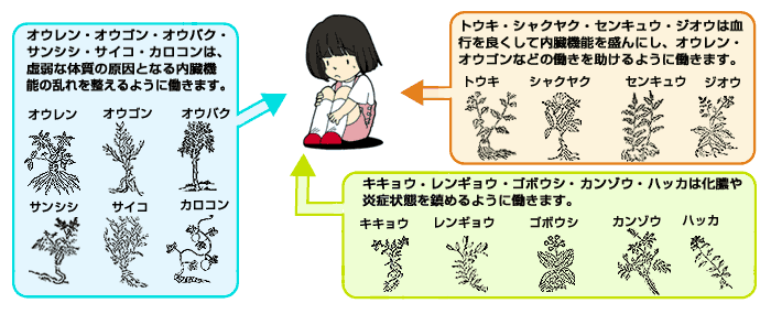 アクマチックは、虚弱者や小児腺病体質者(貧血などになりやすい虚弱・無力体質)の体質改善、及びこのような人の扁桃腺肥大、湿疹などの症状を改善するために考え出された生薬製剤です。