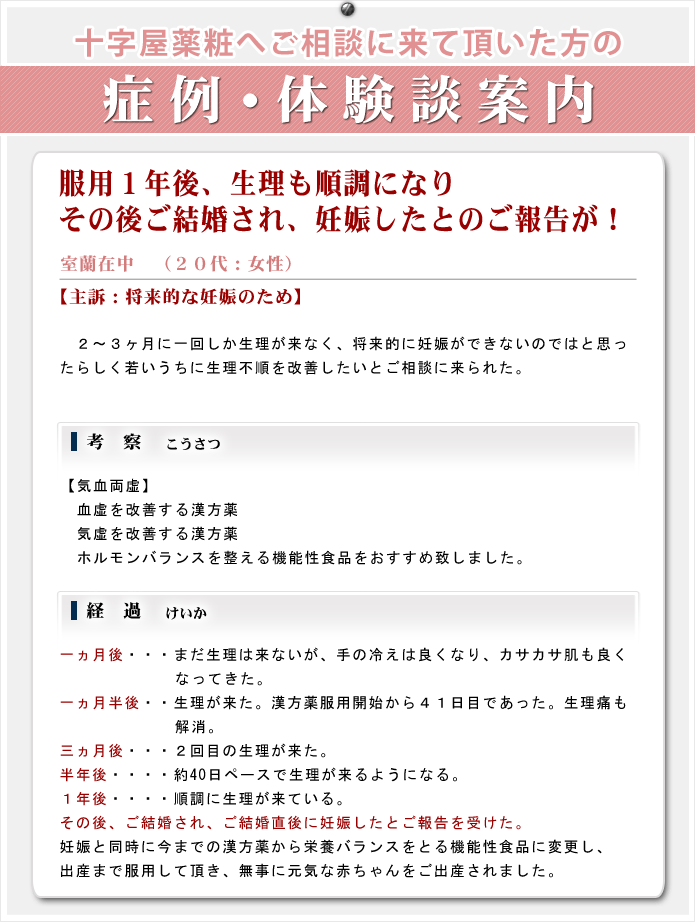 ※ 症例・体験談で紹介している症例内容は、あくまで参考程度にして下さい。