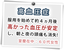 漢方の降圧剤は下げすぎるということがありません。西洋のお薬と併用することも可能です。