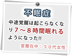 眠りが浅く、直ぐに目が覚めてしまうタイプです。老人の不眠や神経質な人に多いタイプになります。 |