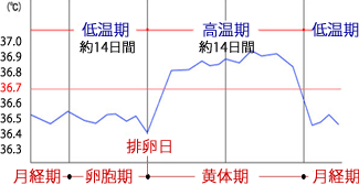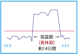 高温期(黄体期)とは、体温が上がる周期後半の約2週間を言います。