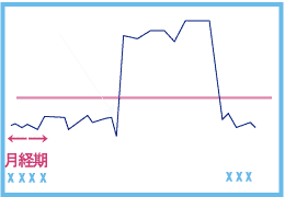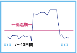 ● 高温相の体温が低い。 ● 月経周期が延びる傾向がある。 黄体機能不全の可能性がある。 全体的に体温が低い場合、甲状腺機能低下症の可能性もある。 |