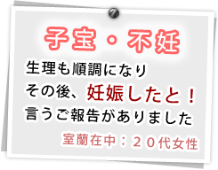 子宮内膜の分泌を促進し、受精卵が着床しやすく、さらに受精卵に十分な栄養を送り込む為に補腎薬を強化します。