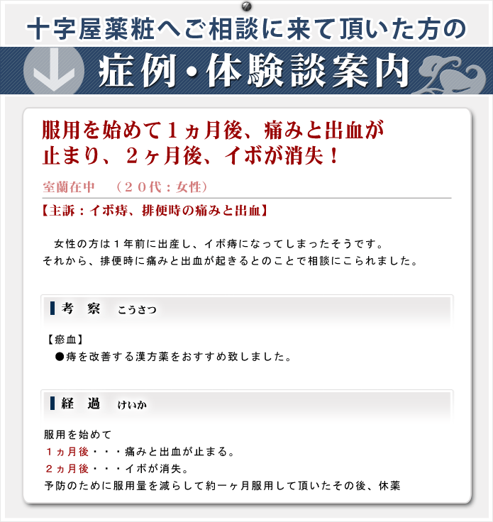 ※ 「症例・体験談」で紹介している症例内容は、あくまで参考程度にして下さい。