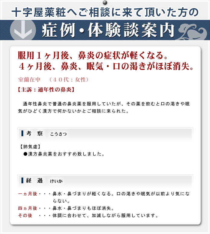 ※ 「症例・体験談」で紹介している症例内容は、あくまで参考程度にして下さい。