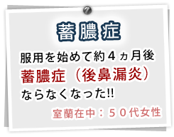 鼻汁に膿が混じるため、ネバネバした黄色っぽい鼻汁がでたり、鼻汁がのどに下りたり(後鼻漏)します。