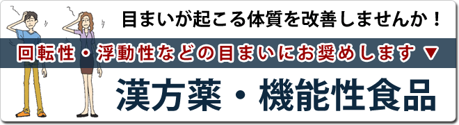 中医学では、目がくらむ、目がかすむ、ふわふわするなどの症状を「目眩」、また、頭がふらつく、周囲が回転したりゆれ動いてみえ、ひどいと目を開けていられず、むかつきや吐き気をともなうなどの症状を「頭暈」といい、まとめて「眩暈」といいます。